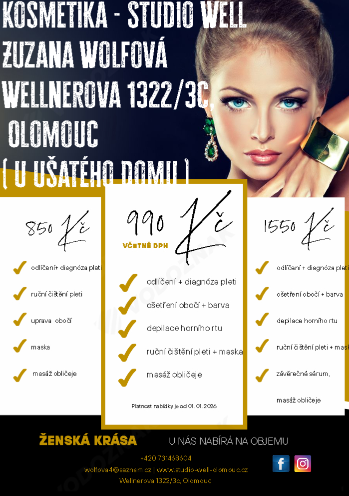 V našem kosmetickém salonu Studio Well v Olomouci se specializujeme na ošetření pleti. Nabízíme širokou škálu procedur, které jsou zaměřeny na zlepšení a omlazení vaší pleti. Naše služby jsou prováděny vyškolenými a zkušenými kosmetičkami, které vám poskytnou individuální přístup a poradí s výběrem nejvhodnějších procedur pro váš typ pleti.